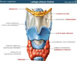 L’òrgan principal de la producció de la veu, forma part de l’aparell respiratori, i comunica la faringe amb la tràquea. Les dimensions d’aquest òrgan varien segons l’edat, sexe i constitució de cada individu. La laringe està formada per nou cartílags (cricoide, tiroide, aritenoide, corniculats, cuneïformes i epiglotis) que són moguts per diferents músculs. Les cares laterals de la laringe estan parcialment cobertes per el tiroides, que és el cartílag que en empassar, parlar o cantar es desplaça amunt. Rere aquest cartílag es troben les cordes vocals. Aquestes són quatre replegaments: dos de superiors (cordes falses o ventriculars) i dos d’inferiors que són les verdaderes cordes vocals. Les dues últimes, en aproximar-se vibrant originen un “so sonor”, i si no vibren produeixen un “so sord”.